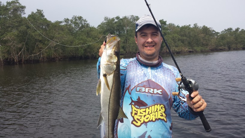 A ideia neste dia era uma pescaria 100% iscas artificias, como não somos bobos nem nada começamos tentando no plug, e logo de cara o Luiz levantou um bom no stick!
